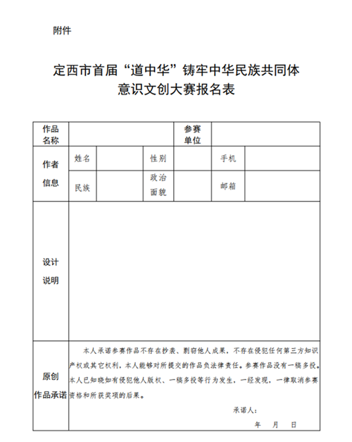 关于举办定西市首届“道中华”铸牢中华民族共同体意识文创大赛的公告 |