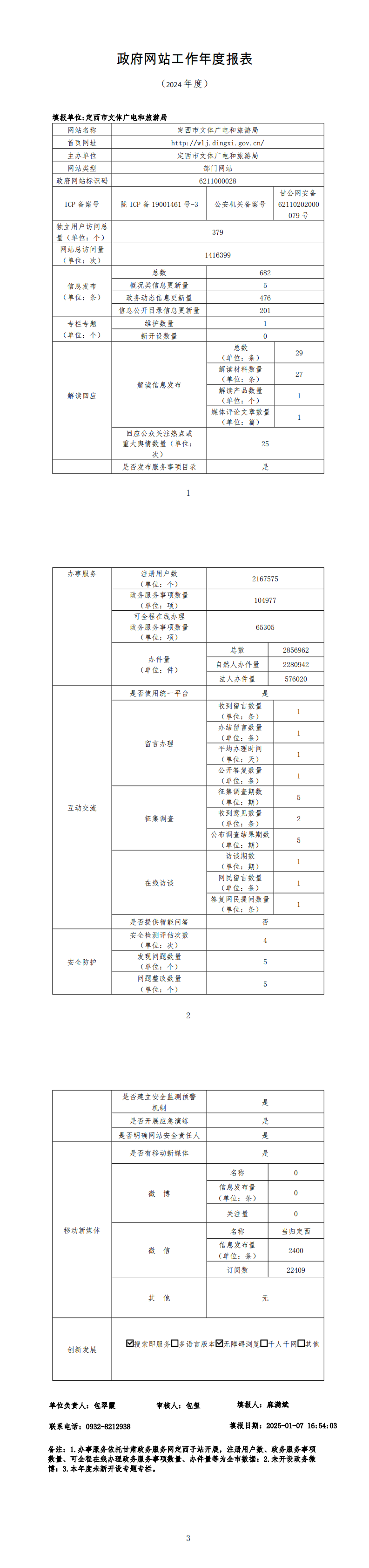 定西市文体广电和旅游局2024年政府网站工作年度报表